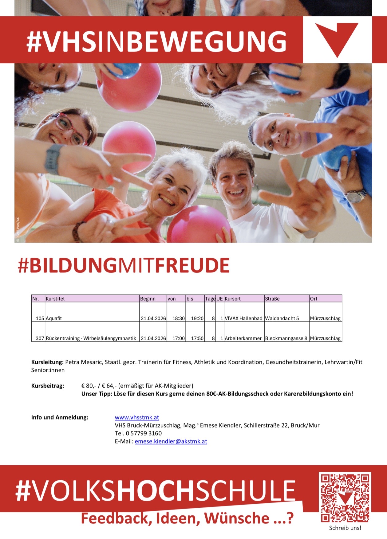 !!! Ab 21. APRIL 2026 startet SportivClub nochmals mit zwei tollen VHS-Kursen !!!