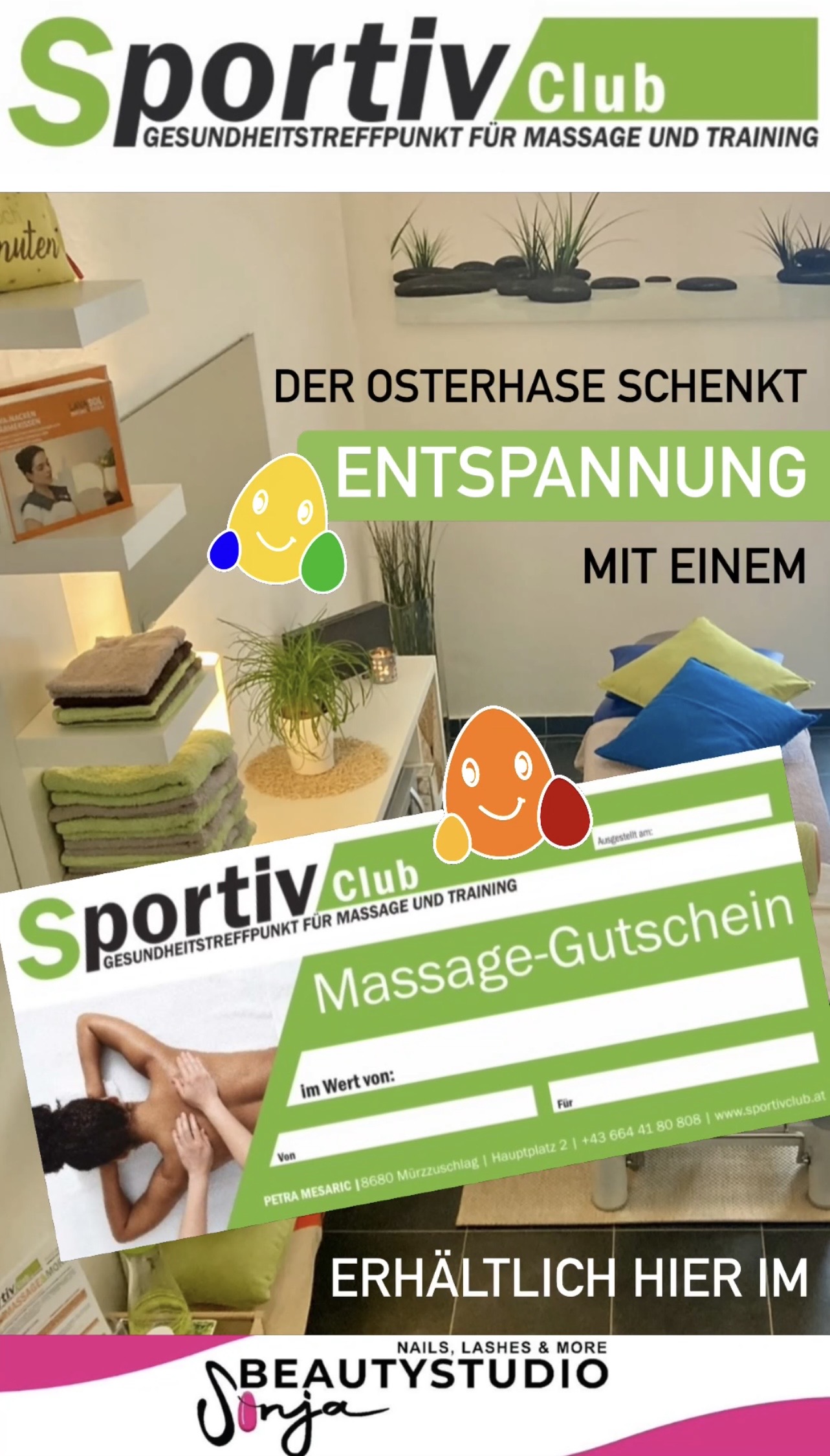 mit vielen entspannten SPEZIALMASSAGEN und SPEZIAL-KOMBIS im SportivClub