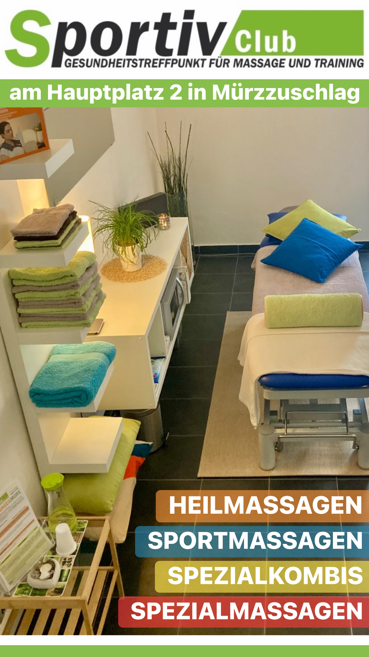 mit vielen entspannten SPEZIALMASSAGEN und SPEZIALKOMBIS im SportivClub