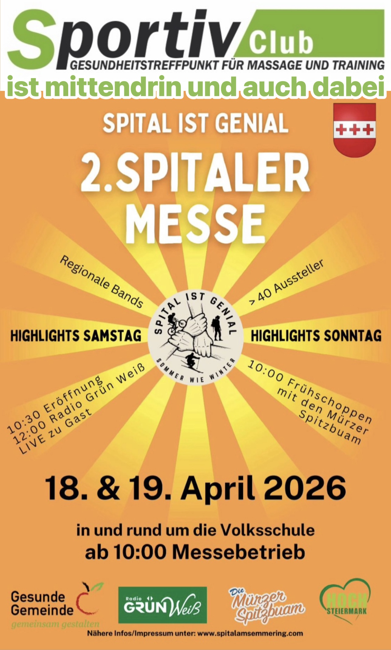 !!! Mittendrin und auch dabei am 18. und 19. April bei der 2. SPITALER MESSE !!!